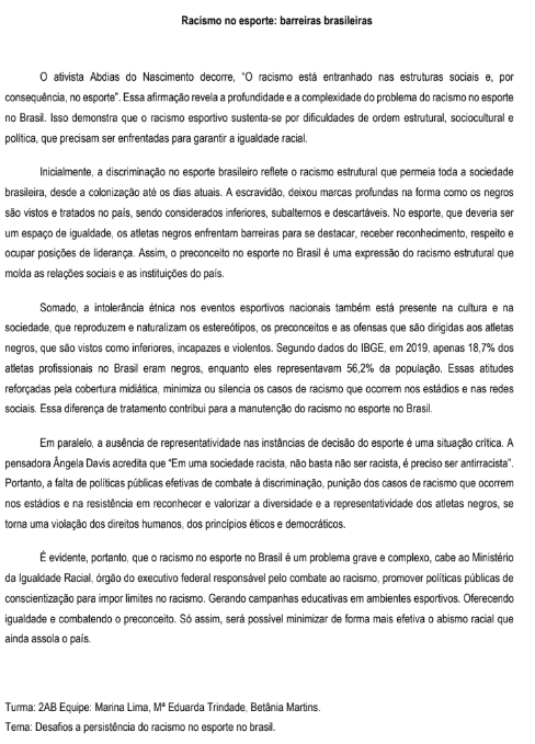 do problema do racismo no esporte no Brasil. Isso demonstra que